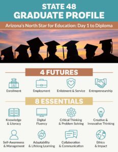 AEF is one of three key partners driving statewide adoption of Arizona’s Portrait of a Graduate. A Portraitof a Graduate (POG) is a shared vision for what students should know and who they can become by the time they graduate. It describes the skills, habits, and competencies that prepare learners for enrollment, employment, enlistment / service,  and entrepreneurship. It serves as a “north star” that guides instruction and student experiences across a district.
